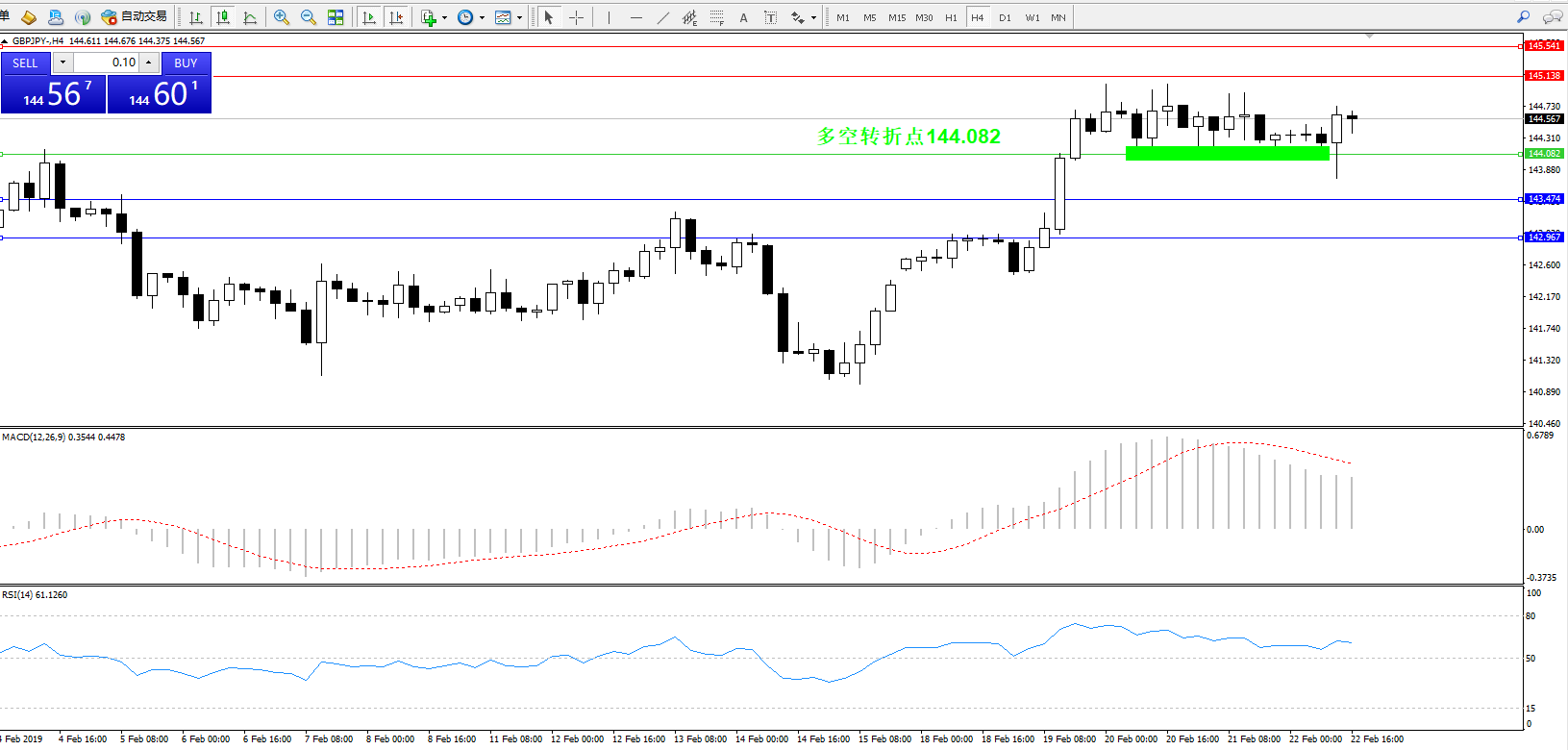 交易策略:144.082上方看涨,目标145.138145.541