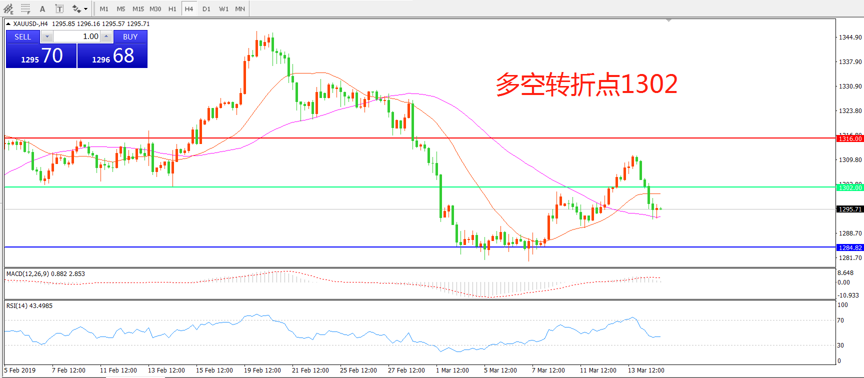 多空转折点:1302.00