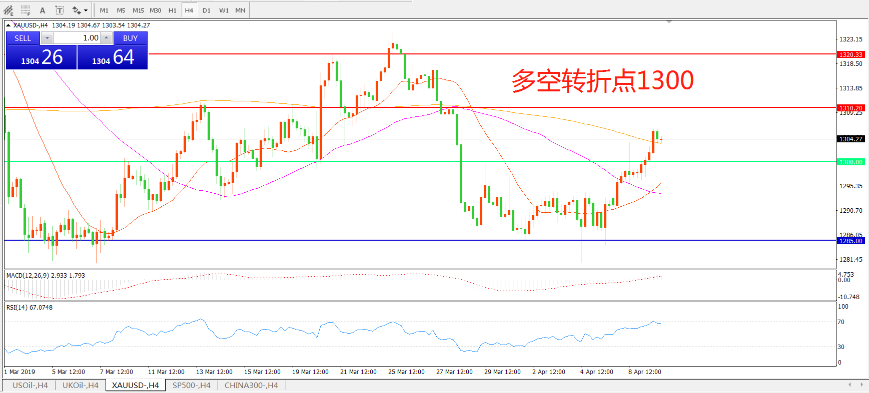 交易策略:在1300.00之上看涨,目标1310.00 1320.00