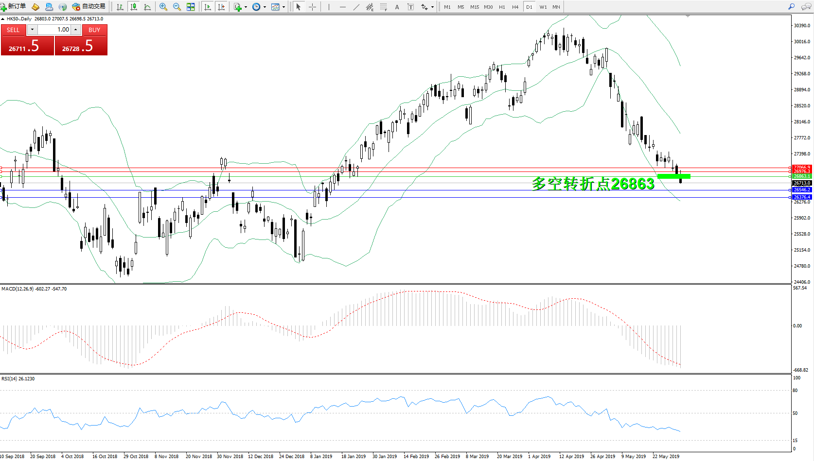 中国内地股市早盘冲高回落,午后维持震荡格局。截至收盘,上证综指跌0.24%,收于2898.70点,周线涨1.60%,月线跌5.84%;香港恒生指数震荡走低,截至收盘跌0.79%,报26901.09点。财政部网站,国务院关税税则委员会0513日决定,自2019610时(即午夜)起,对原产于美国的部分进口商品提高加征关税税率。中国5月制造业再度收缩,官方制造业PMI跌破枯荣线,主要由于订单数量减少,出口订单下降尤为严重。5月份,中国制造业PMI4月的50.1降至49.4,回落0.7点,不及分析人士预期的49.9。非制造业PMI持稳,报54.3,符合预期。本周,中国央行累计开展5300亿元逆回购操作,因本周有1000亿元逆回购到期,本周实现净投放4300亿元。
