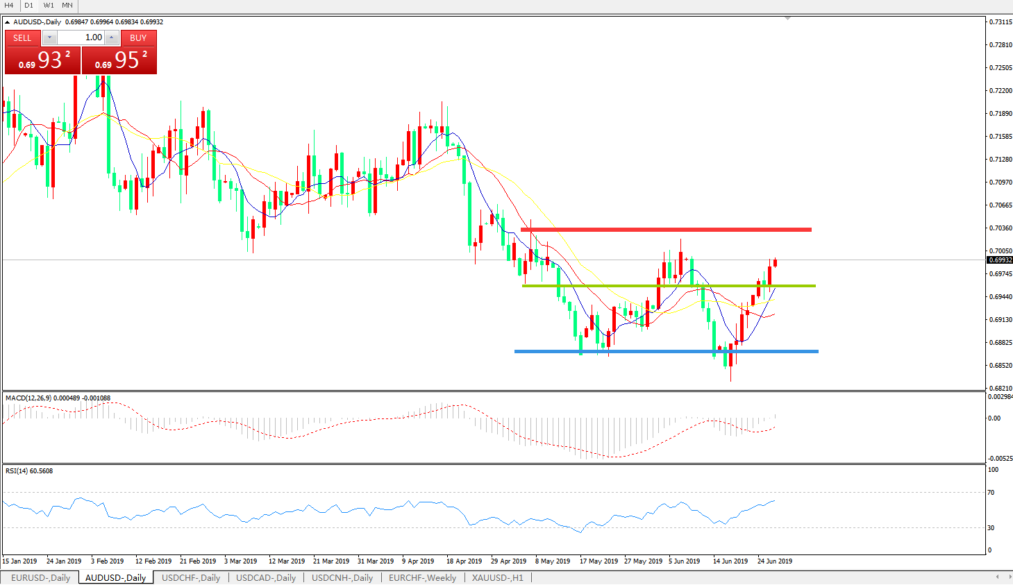 交易策略:0.6960上方看涨,目标0.7020、0.7100