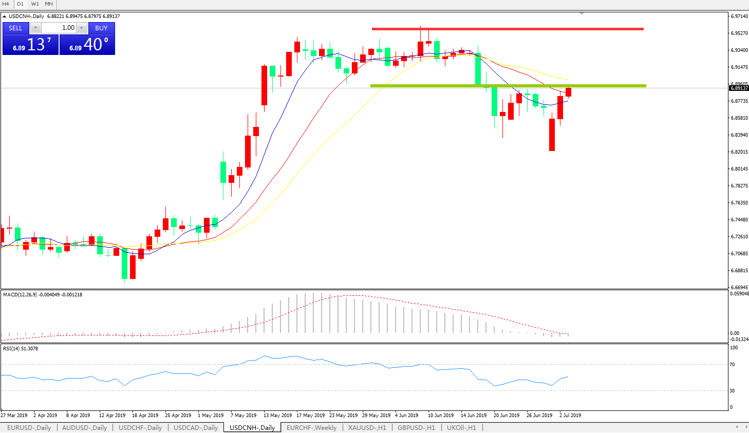 交易策略: 在6.9000之下,看跌,目标价位为6.8100,然后为6.7600。