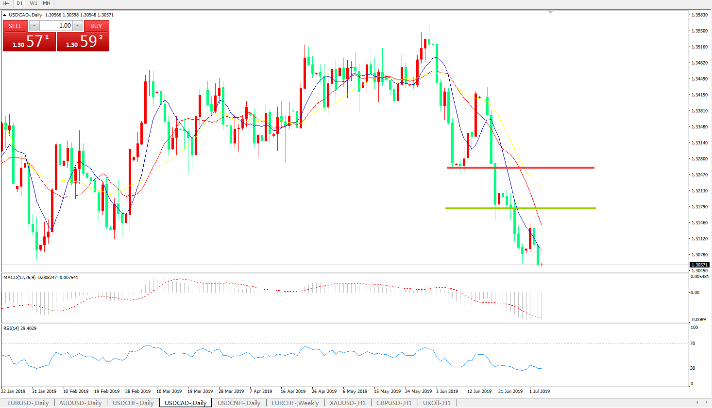 美元兑加元USDCAD    日线图: