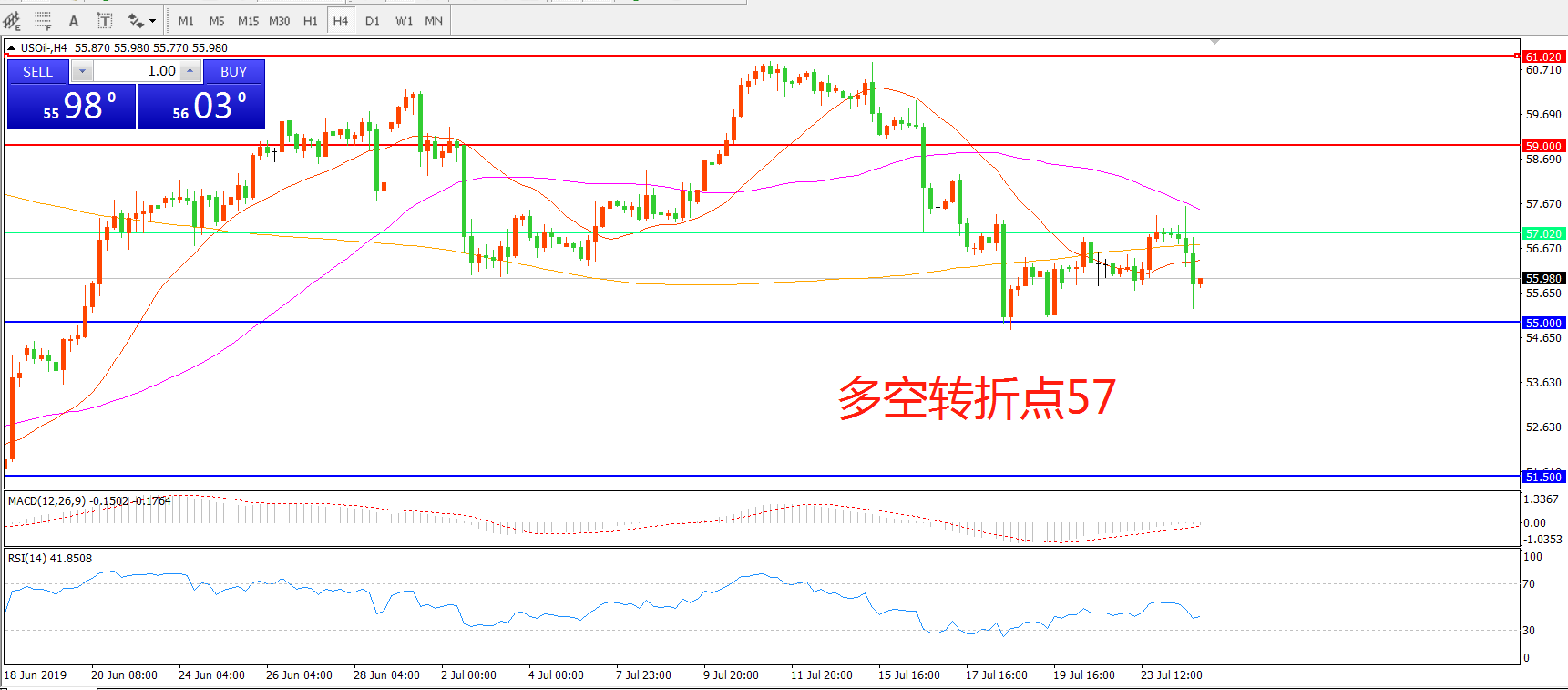 交易策略:在57.00之下看跌,目标55.00    51.50
