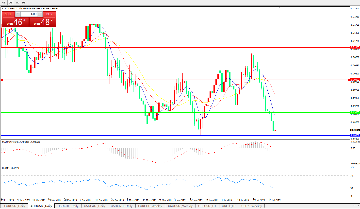 澳元兑美元AUDUSD 日线图