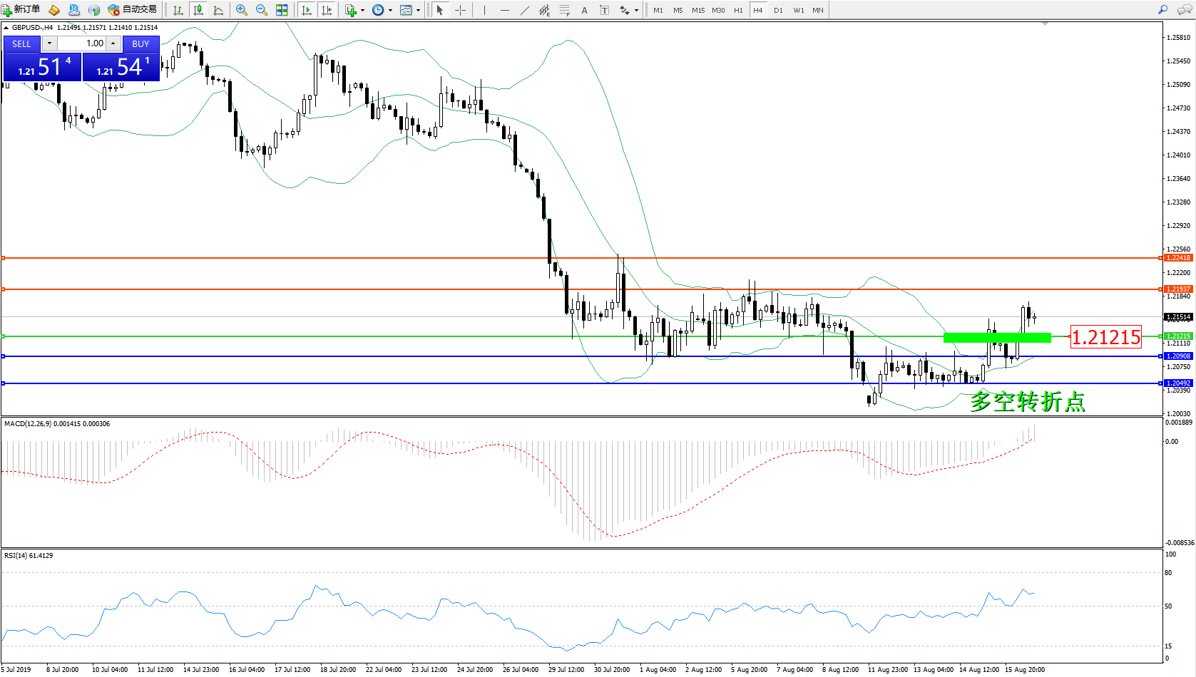交易策略:1.21215上方看涨,目标1.21937、1.22418