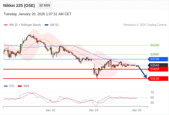 在 53730 之下,看跌,目标价位为 53420 ,然后为 53130 。