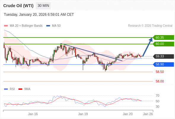 在 58.90 之上,看涨,目标价位为 60.00 ,然后为 60.35 。