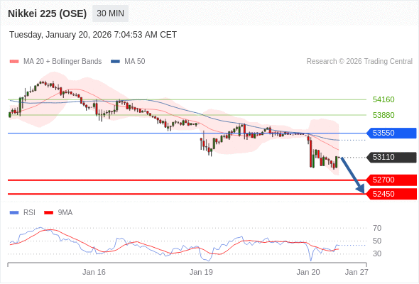 在 53550 之下,看跌,目标价位为 52700 ,然后为 52450 。