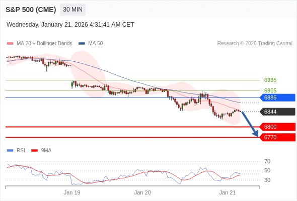 交易策略: 在 6885 之下,看跌,目标价位为 6800 ,然后为 6770 。