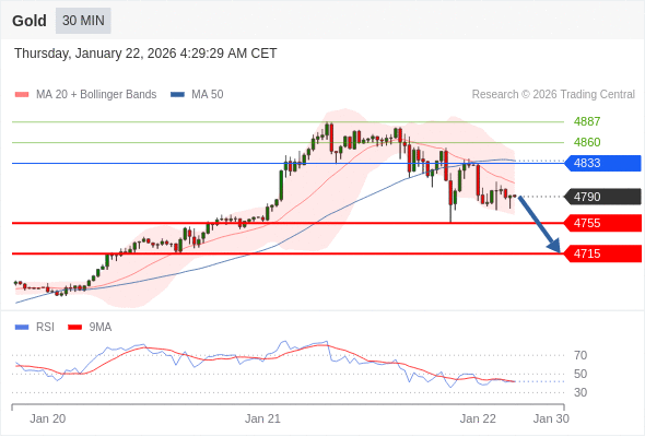 在 4833 之下,看跌,目标价位为 4755 ,然后为 4715 。