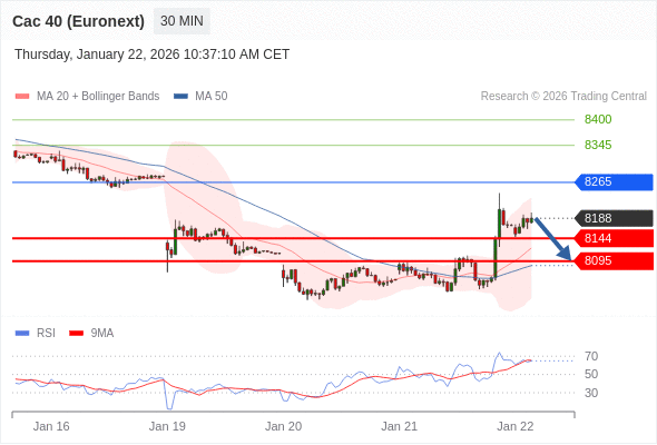 交易策略: 在 8265 之下,看跌,目标价位为 8144 ,然后为 8095 。