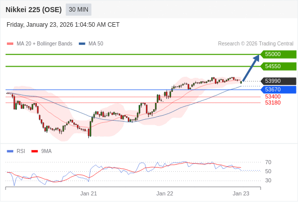 日经225股指期货 (OSE) 当日内: 在53670之上,看涨。