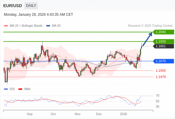 在 1.1670 之上,看涨,目标价位为 1.1920 ,然后为 1.2040 。