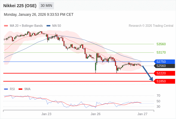 在 52750 之下,看跌,目标价位为 52220 ,然后为 51850 。