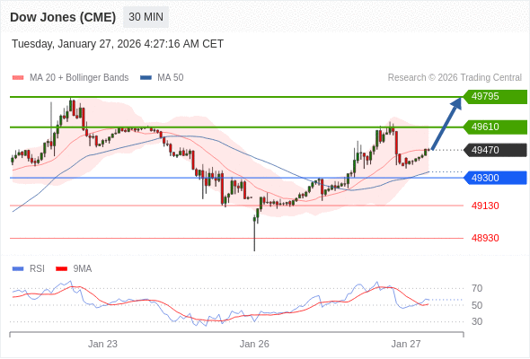在 49300 之上,看涨,目标价位为 49610 ,然后为 49795 。