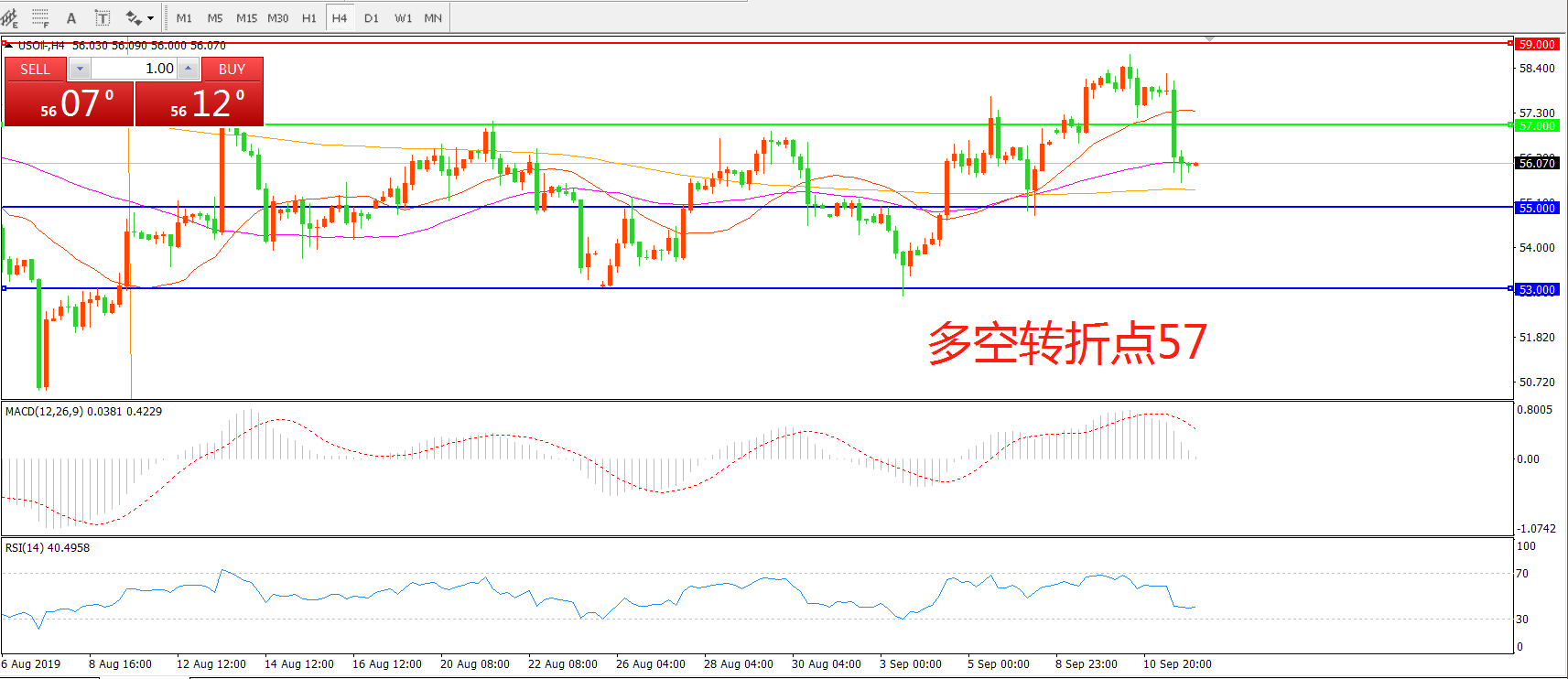 多空转折点:57.00