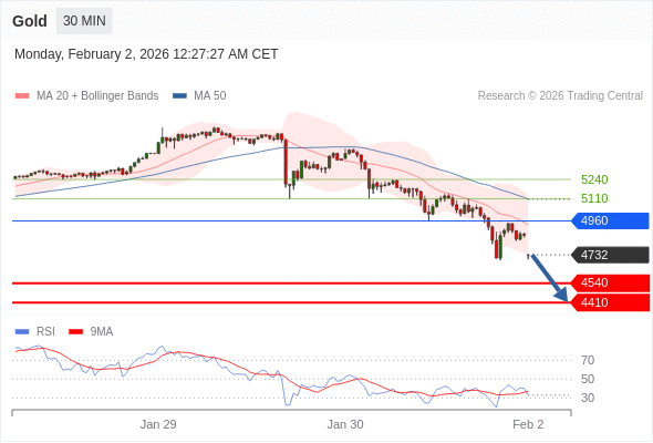 在 4960 之下,看跌,目标价位为 4540 ,然后为 4410 。