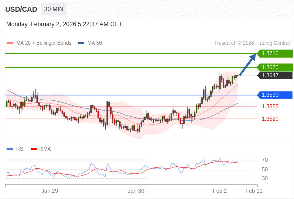在 1.3590 之上,看涨,目标价位为 1.3670 ,然后为 1.3710 。