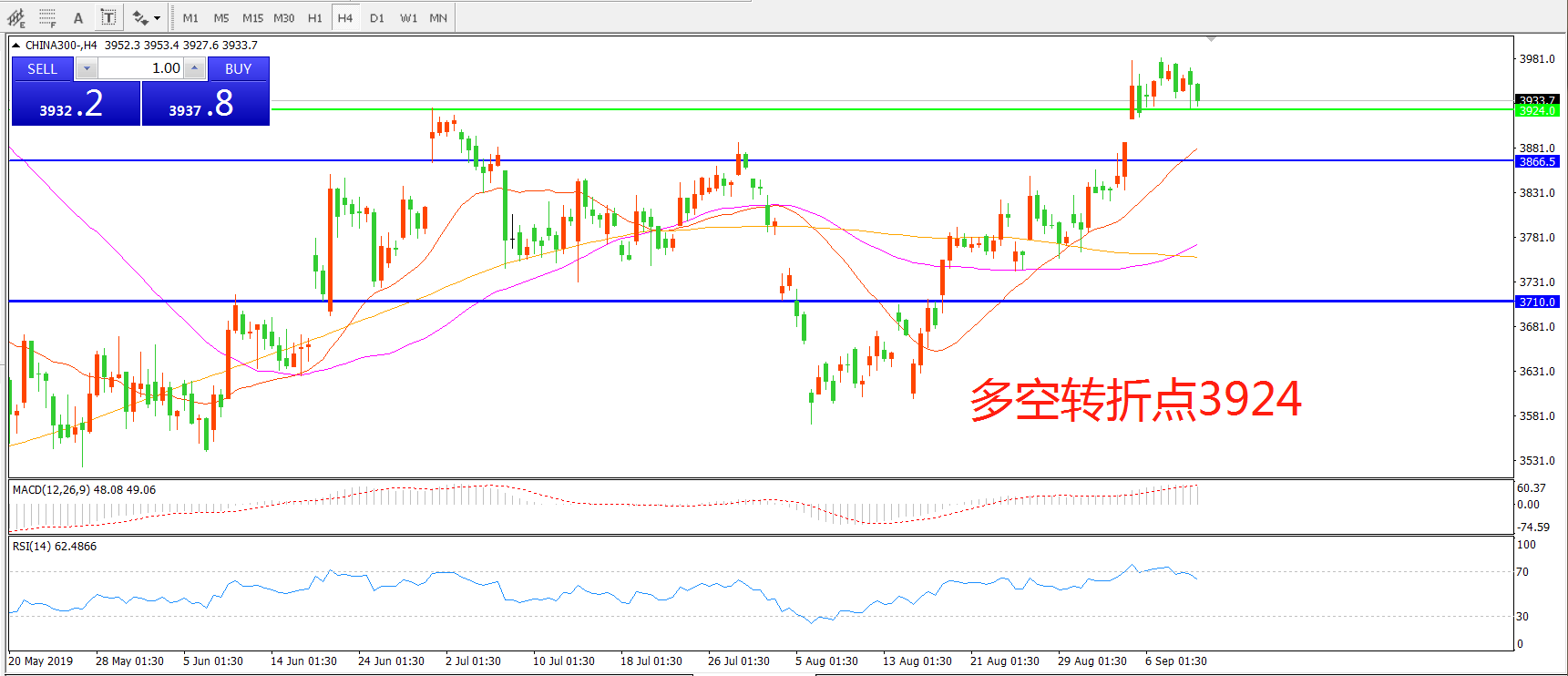 多空转折点:3924.00