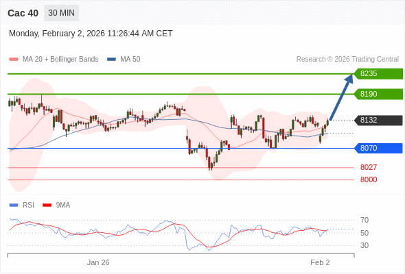 在 8070 之上,看涨,目标价位为 8190 ,然后为 8235 。