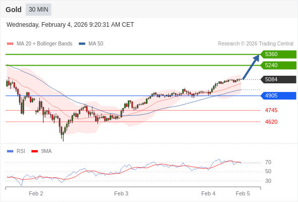 在 4905 之上,看涨,目标价位为 5240 ,然后为 5360 。