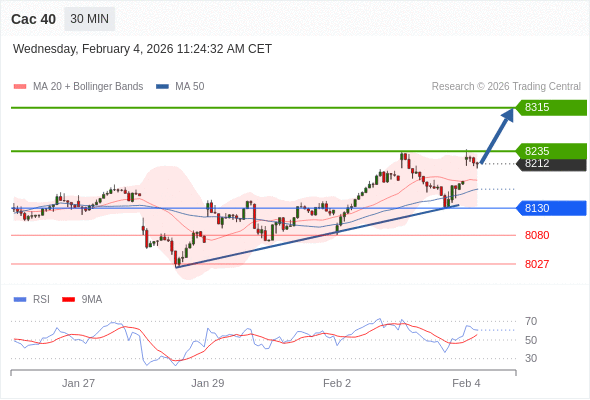 在 8130 之上,看涨,目标价位为 8235 ,然后为 8315 。