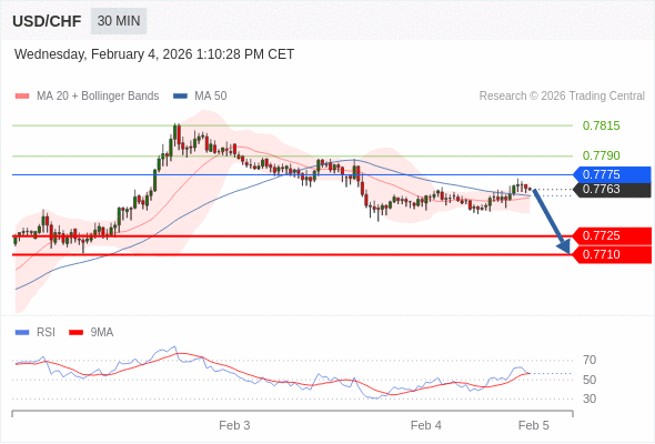 交易策略: 在 0.7775 之下,看跌,目标价位为 0.7725 ,然后为 0.7710 。