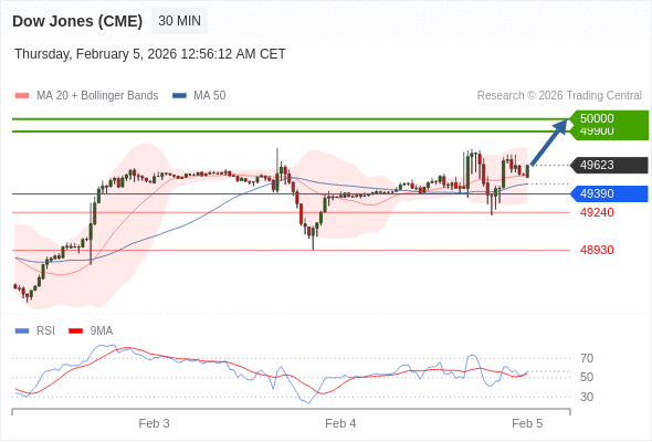 在 49390 之上,看涨,目标价位为 49900 ,然后为 50000 。