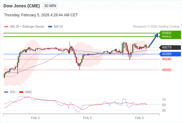 在 49390 之上,看涨,目标价位为 49900 ,然后为 50000 。