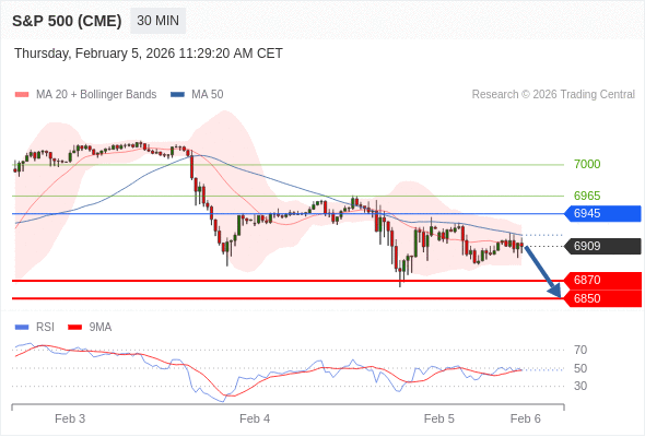 在 6945 之下,看跌,目标价位为 6870 ,然后为 6850 。