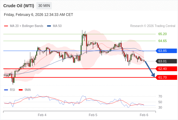 在 63.85 之下,看跌,目标价位为 62.40 ,然后为 61.70 。