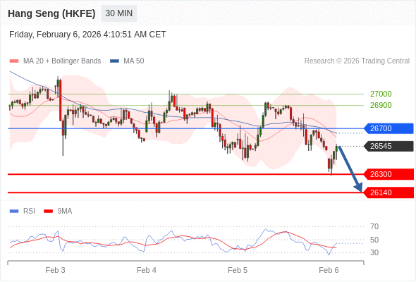 在 26700 之下,看跌,目标价位为 26300 ,然后为 26140 。