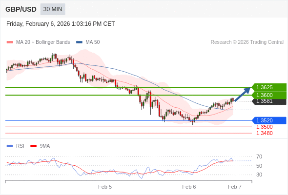 在 1.3520 之上,看涨,目标价位为 1.3600 ,然后为 1.3625 。