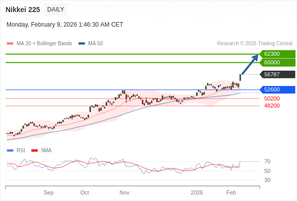 交易策略: 在 52600 之上,看涨,目标价位为 60000 ,然后为 62300 。