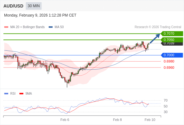 在 0.7000 之上,看涨,目标价位为 0.7050 ,然后为 0.7070 。