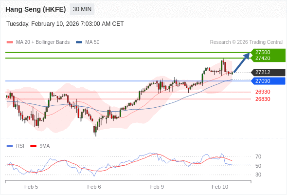 在 27090 之上,看涨,目标价位为 27420 ,然后为 27500 。