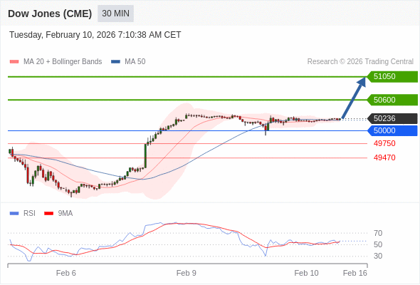 在 50000 之上,看涨,目标价位为 50600 ,然后为 51050 。