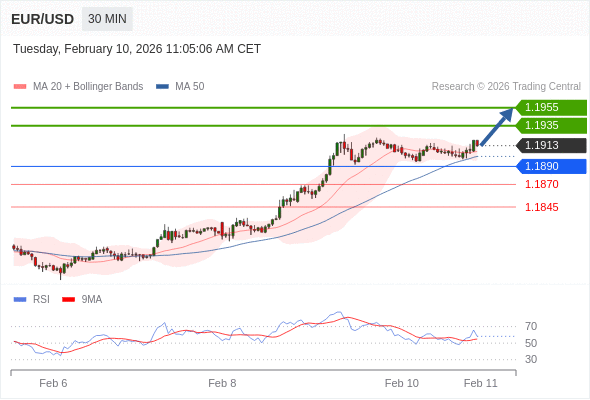在 1.1890 之上,看涨,目标价位为 1.1935 ,然后为 1.1955 。