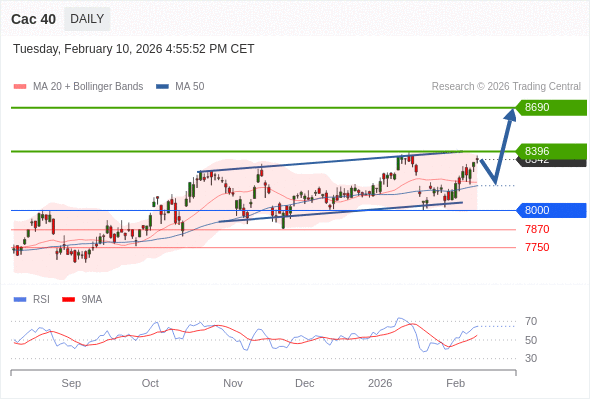 在 8000 之上,看涨,目标价位为 8396 ,然后为 8690 。