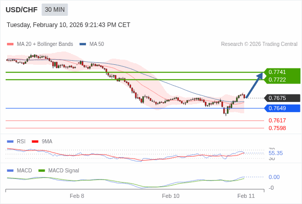 美元/瑞郎 当日内 : 看涨,当 0.7649 为支撑位。