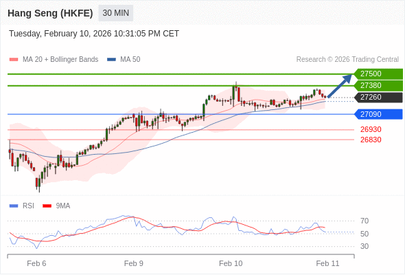 在 27090 之上,看涨,目标价位为 27380 ,然后为 27500 。