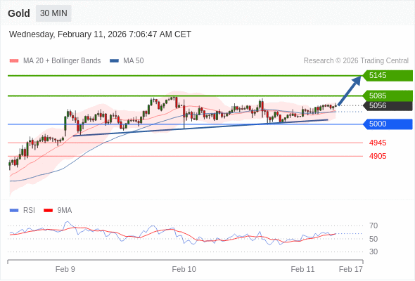 在 5000 之上,看涨,目标价位为 5085 ,然后为 5145 。