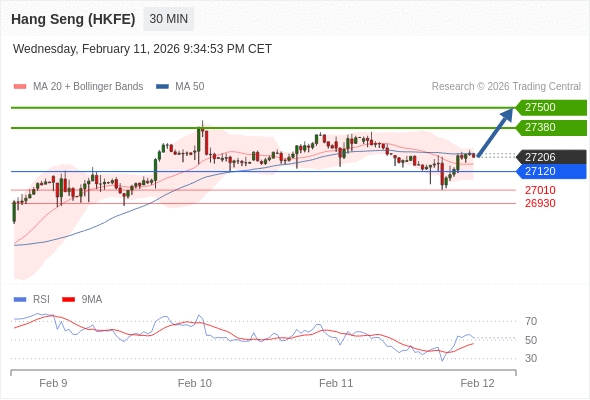 在 27120 之上,看涨,目标价位为 27380 ,然后为 27500 。