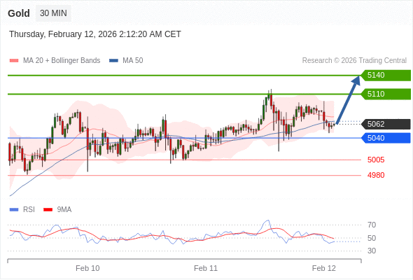 在 5040 之上,看涨,目标价位为 5110 ,然后为 5140 。