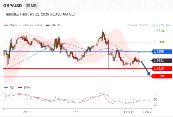 在 1.3655 之下,看跌,目标价位为 1.3610 ,然后为 1.3590 。