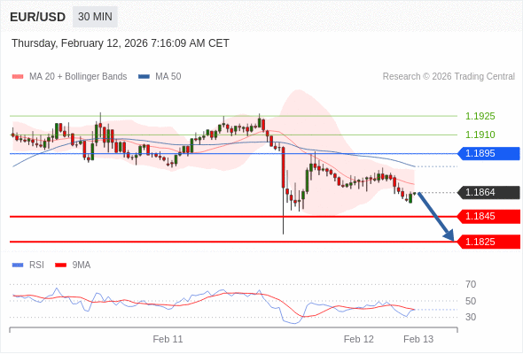 在 1.1895 之下,看跌,目标价位为 1.1845 ,然后为 1.1825 。
