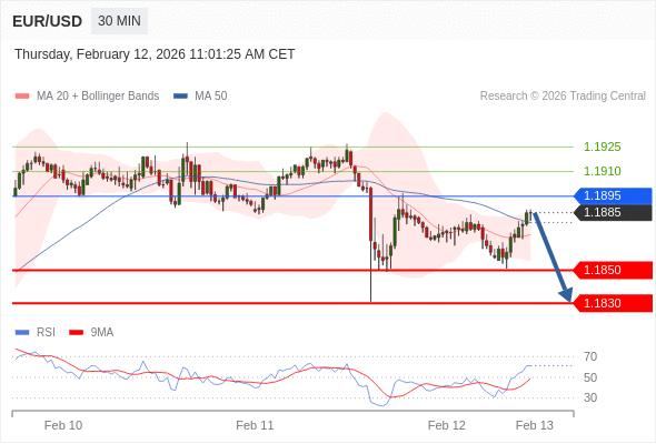交易策略: 在 1.1895 之下,看跌,目标价位为 1.1850 ,然后为 1.1830 。