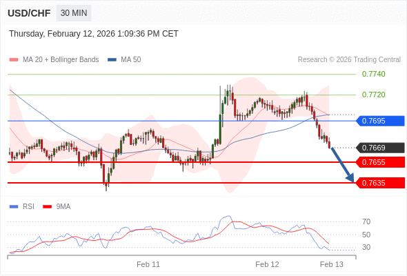 在 0.7695 之下,看跌,目标价位为 0.7655 ,然后为 0.7635 。