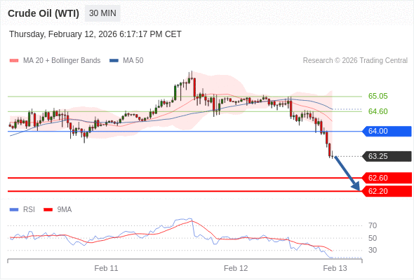 在 64.00 之下,看跌,目标价位为 62.60 ,然后为 62.20 。